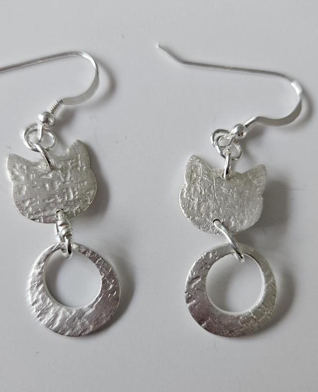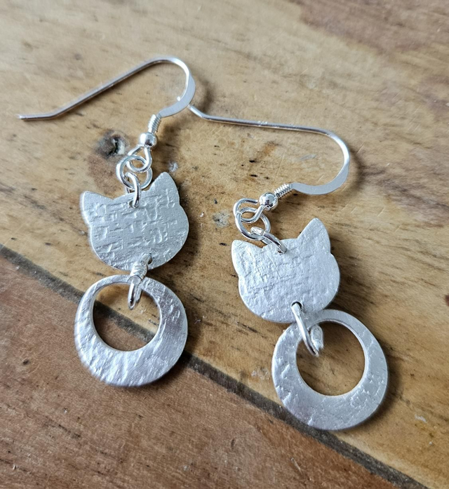 Handmade using fine silver clay, which ive lightly textured, these earrings are in two parts, head and body, which have free movement when worn. Attached to sterling silver earring hooks and gift boxed. A fun and unique pair of earrings for any animal lover!
